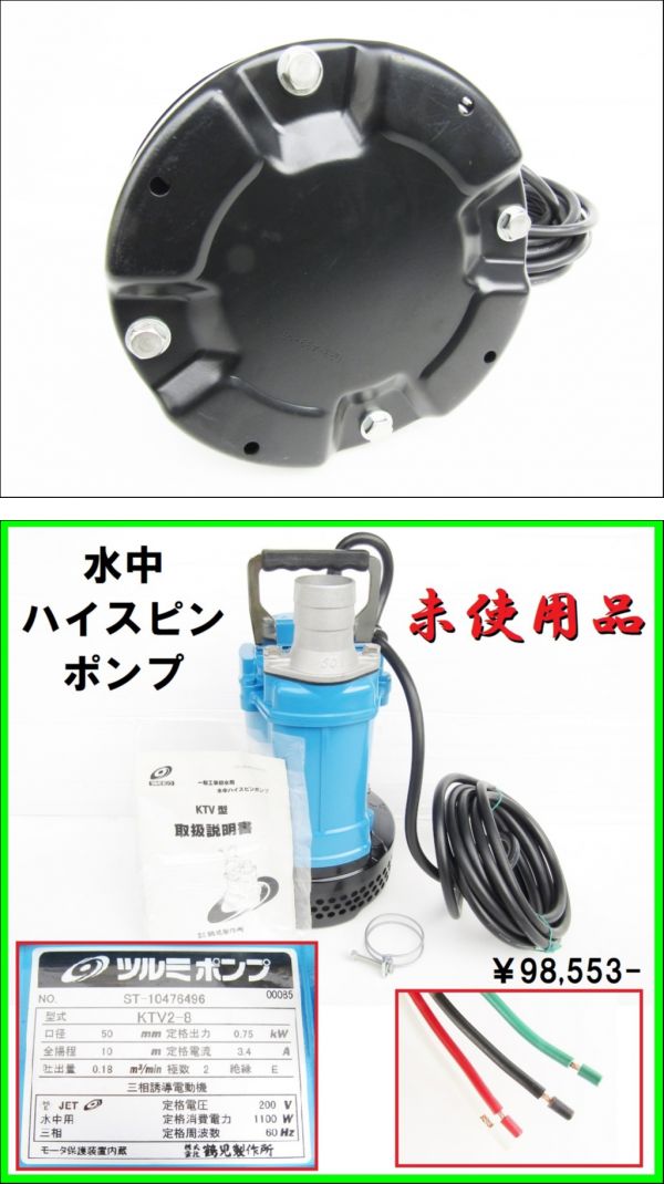 未使用 50mm ツルミポンプ 水中ハイスピンポンプ KTV-2-8 鶴見ポンプ ¥98,553- 一般工事排水用 揚水 給水 吸水 排水 雨水 湧水 溜まり水 土木 建築工事の泥水 | |