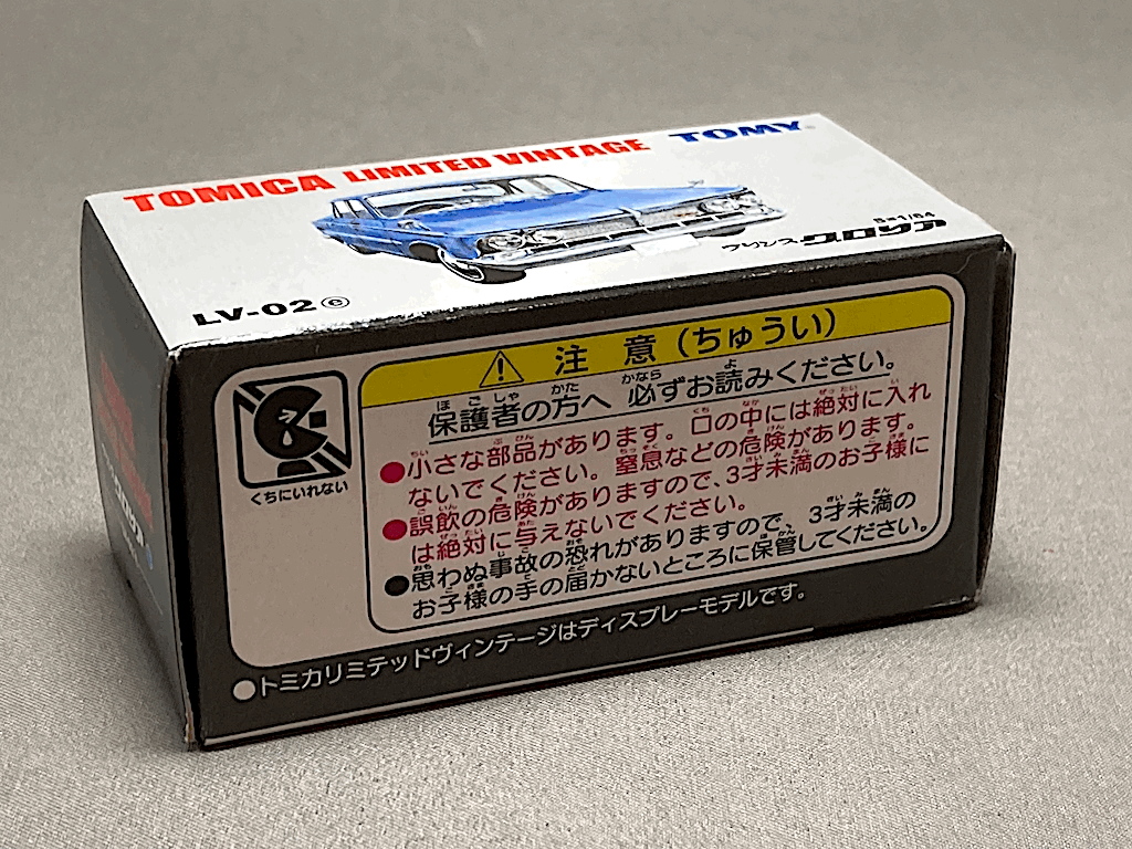 | トミカリミテッドヴィンテージ LV-02e プリンス グロリア(紺/内装色替Ver.) 未開封、未使用品。製造時からの塗装の不出来やタンポの欠けなど製造上の個体差、箱の初期擦れシワ、折れ、傷、汚れ等の傷みなどがある場合がありますので予めご了承下さい。写真では分りづらいキズ等がある場合もあります。ご理解の程宜しくお願い致します。 | |||