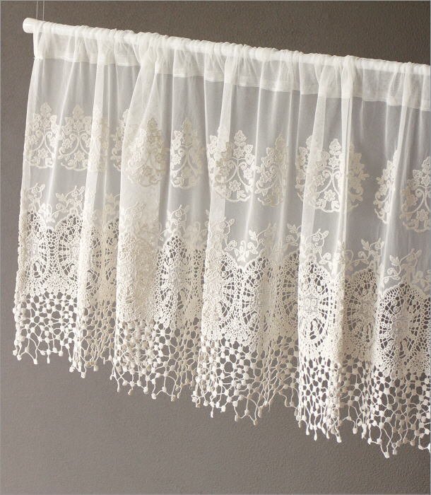 カフェカーテン 45cm丈 レース 目隠し おしゃれ 刺繍 キッチン トイレ 北欧 カフェカーテン HU45 送料無料(一部地域除く) won6338 收藏
