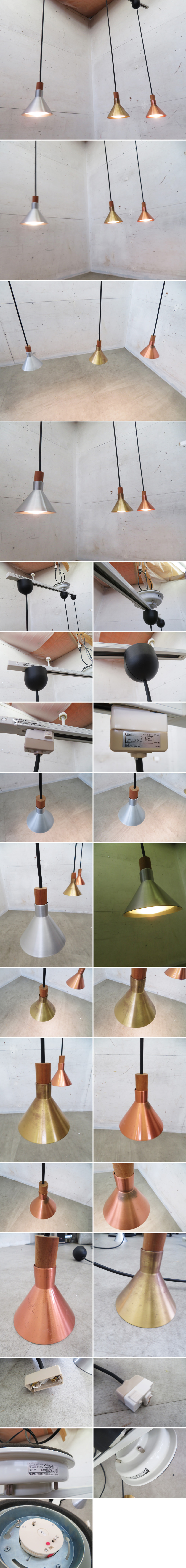 【DI CLASSE /ディクラッセ】より、エポカペンダントライト3灯セットのご紹介です。 【DI CLASSE /ディクラッセ】の照明器具は、時代と共に変化するスタイル、 いつまでも飽きのこないデザイン、アイデンティティーをコンセプトにデザインされております。 照明器具をはじめ、ライフスタイルに合わせたインテリアプロダクトによる空間づくりを目指し、 快適なライフスタイルを提案します。 存在感のある金属そのものを活かしたペンダントランプ。 存在感のある金属そのものを活かしたレトロなシェードと、温かみのあるLEDライトの組み合わせ。 シェードは素材の質感を引き立てる最低限のクリア塗装のみで仕上げられており、 時間とともにアンティークのような味わい深い風合いへと変化します。 経年変化を楽しめるエイジングデザインが魅力です。 光源には自然光に近い暖かなLEDを採用し、心地よい明かりを灯します。 gold 真鍮の色は温かみのある黄金色が特徴です。柔らかなゴールドのように上品な輝きを放ちますが、 金よりも控えめで落ち着いた印象を与え、華やかさと渋さを兼ね備えた独特の美しさがあります。 bronze 銅の色は、太陽が沈む直前の夕焼けを思わせるような、穏やかで深みのある印象を与えます。 色彩の移ろいを通じて、時間の流れや歴史を感じさせてくれる金属です。 silver 軽さと耐久性を兼ね備えたアルミニウムは、シルバー特有のシャープで都会的な合いです。 その涼やかな銀色は、シンプルさの中に洗練を求める現代にぴったりの存在感を放っています。 濃い色のウッドをアクセントに。 アクセントにウォルナットの天然木を使用。コードを保護する役割もあります。 大変おすすめですのでこの機会にぜひ!!! コンディション:モデルル―ム展示品の為、写真の様な傷、汚れなどありますが、その他は大きなダメージはなく美品です。 レールサイズ横105センチ奥行き18センチ高さ17センチです。 ライトサイズ横12.5センチ奥行き12.5センチ高さ15センチ、コード長80センチです。