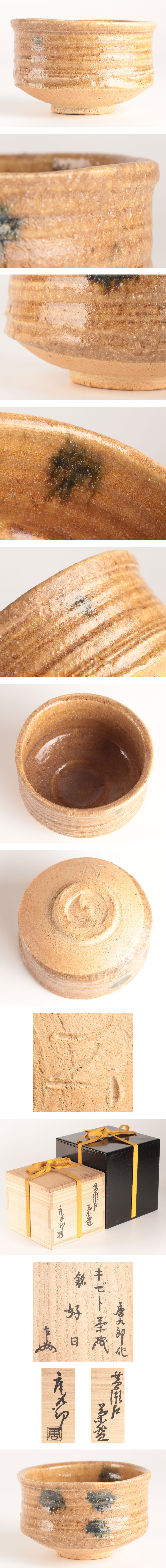 【流】加藤唐九郎 黄瀬戸 茶碗 銘「好日」 即中斎書付 共箱 二重箱 UC411 收藏