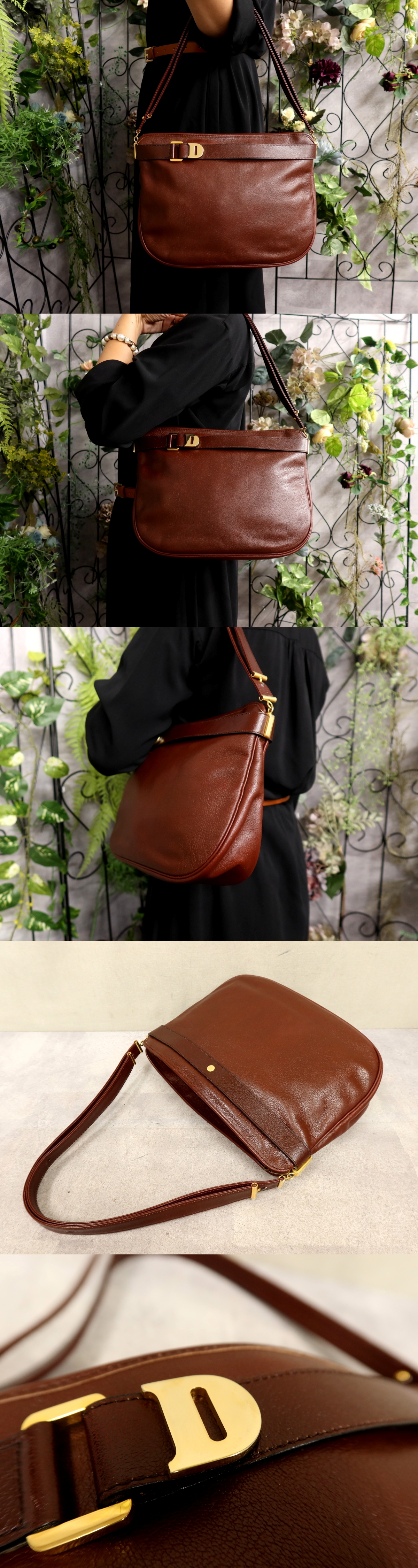 超美品●Christian Dior クリスチャン・ディオール●カーフ レザー 本革●ショルダー バッグ●ブラウン●G金具●ヴィンテージ●B5●Js61425 收藏
