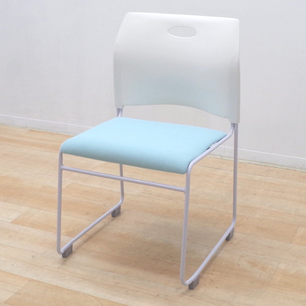 【新古品】 スタッキングチェア ホワイト/ミント ミーティングチェア 肘無 会議椅子 EG15626 中古オフィス家具 收藏