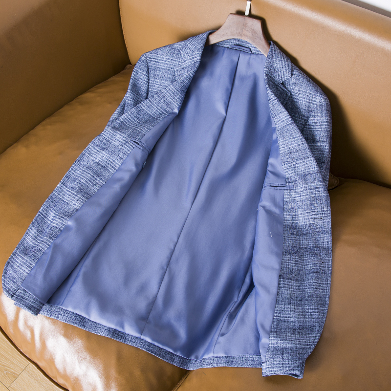 新入荷 人気2XLテンセル混テーラードジャケット メンズ ストライプ ノーアイロン 防シワ スーツ 春夏 薄手 サマージャケット/ブルーグレー 收藏
