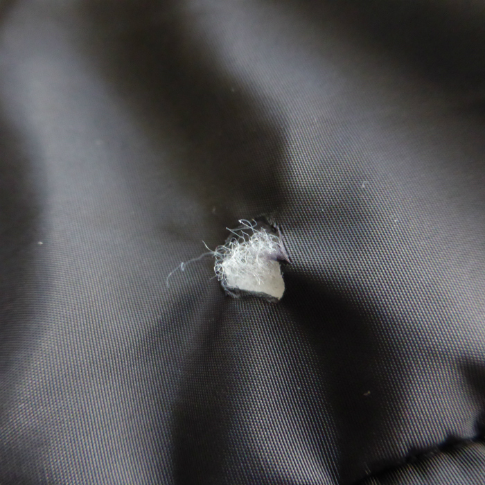 | 黒面に8mmほどの穴や、袖やジップ部分にスレ、薄シミが見受けられますが、まだまだお使いいただけるお品です。 |