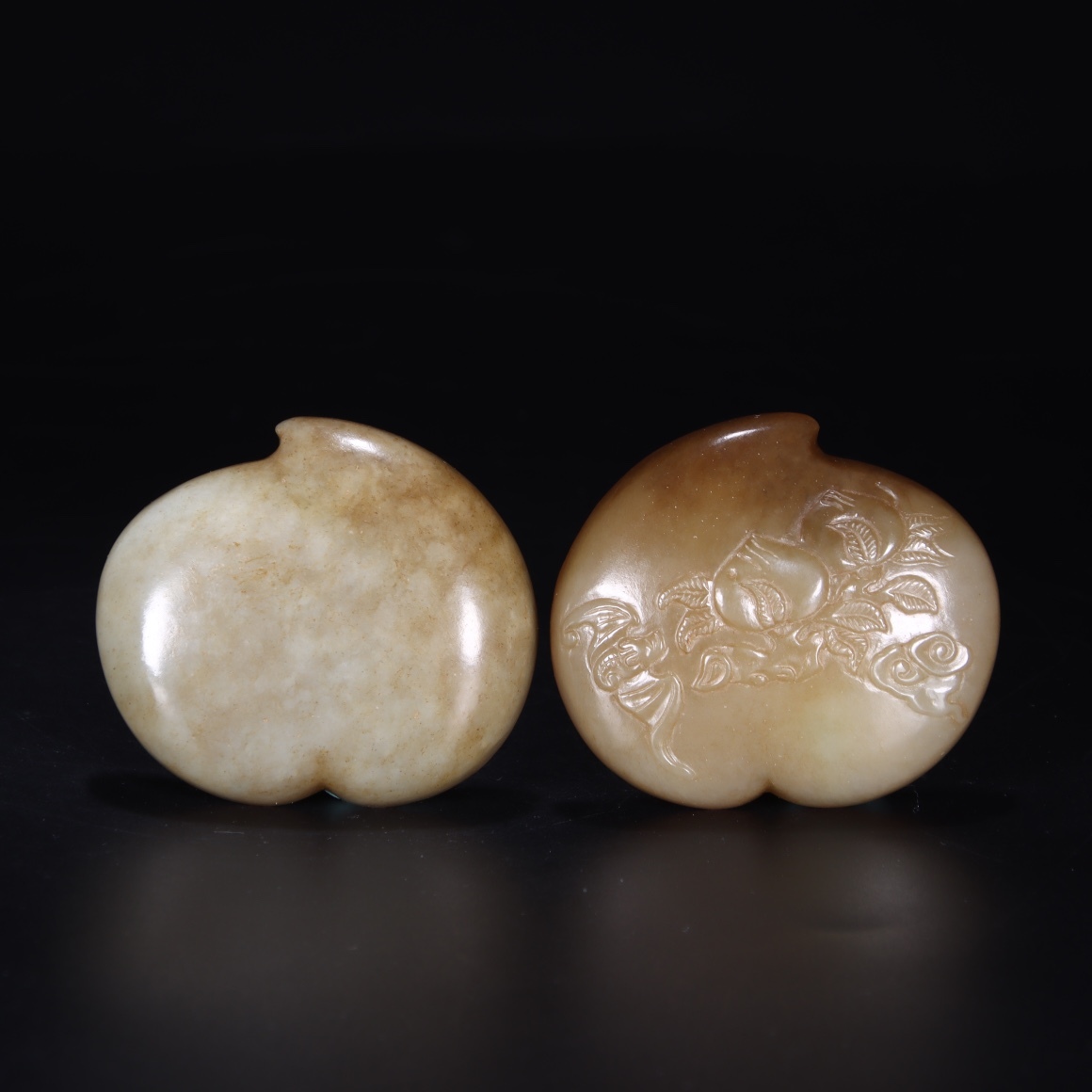 ◆御泓軒◆『清時代 和田玉 桃形粉盒』極細工・古賞物・中国古玩・中国古美術