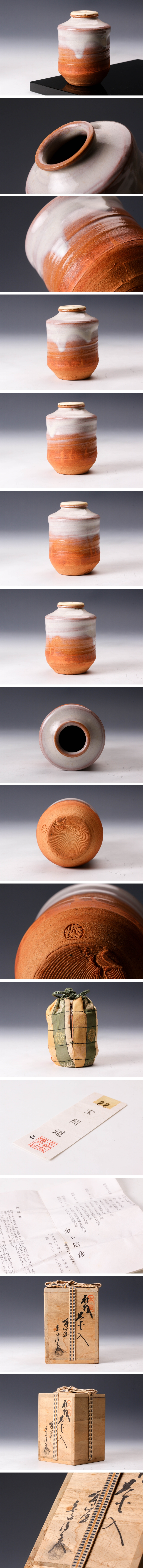 【佳香】金子信彦 城山窯 萩焼茶入 共箱 栞 仕覆(宝間道) 茶道具 本物保証 收藏
