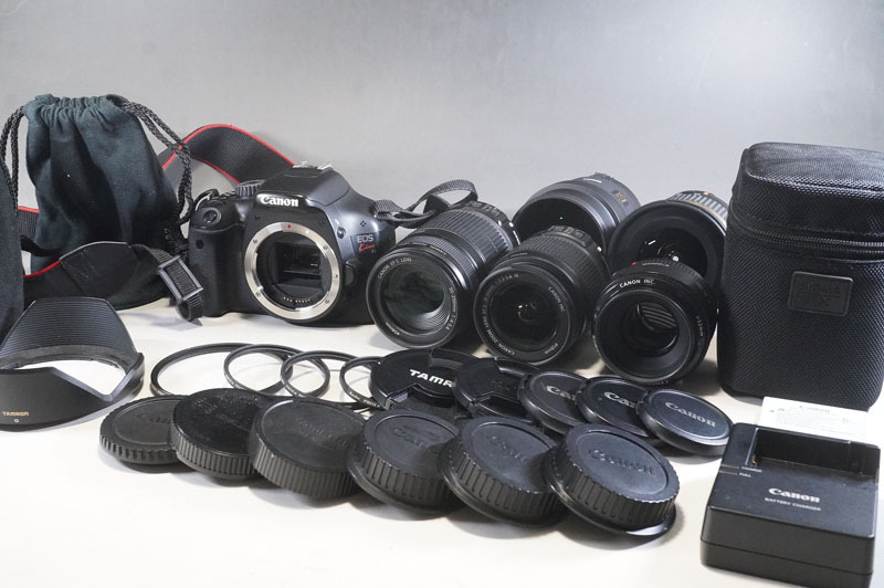 1円~【K599】Canon/キャノン EOS Kiss X4 レンズ5本 EF 50mm 1:1.8/EF-S 55-250mm 1:4-5.6/EF-S 18-55mm 1:3.5-5.6 他 バッテリー2個 收藏