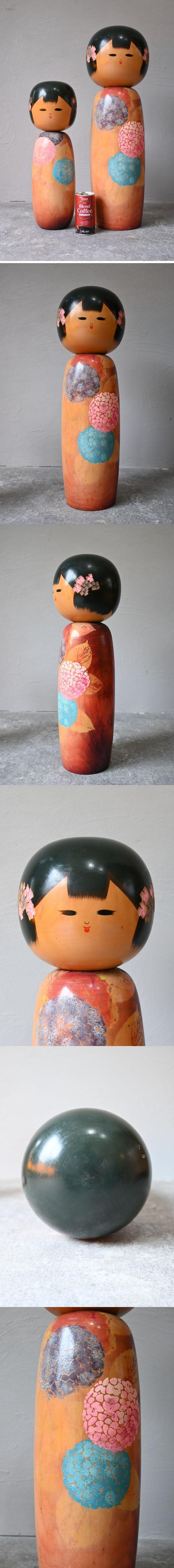 創作こけし 佐藤香村 作 『あじさい』 2体 57cm 41cm 伝統こけし 近代こけし 郷土玩具 日本人形