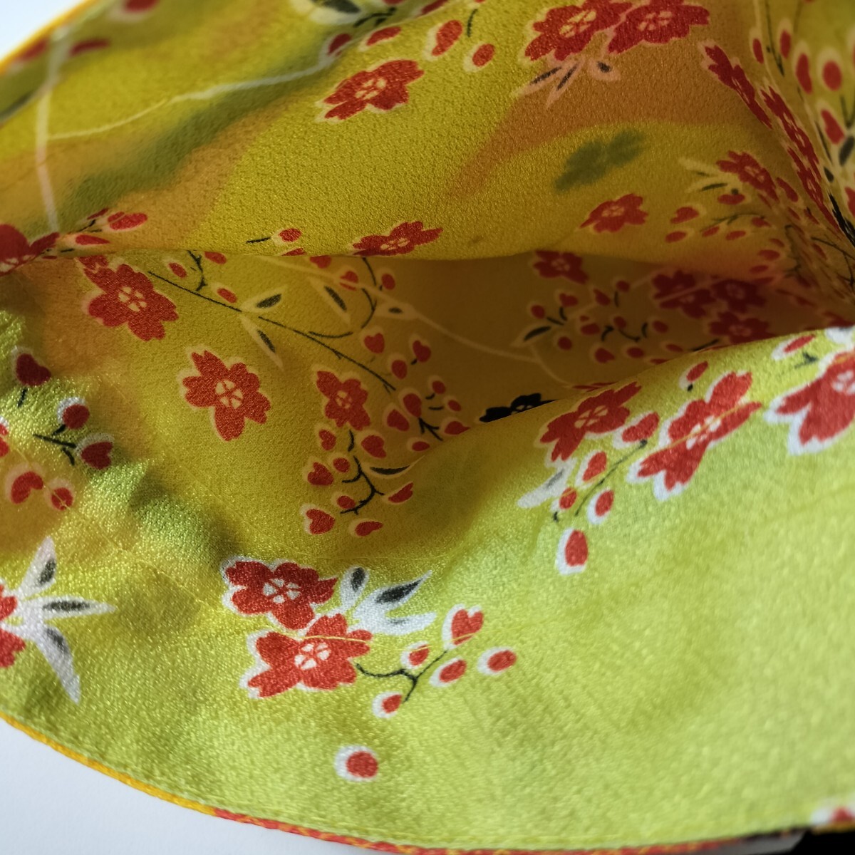 和柄 巾着袋 リバーシブル 菱文 花文 橙色 /鶯色 24.5cm×16.5cm 未使用品 [ 和装小物 巾着 小物入れ きんちゃく] 收藏