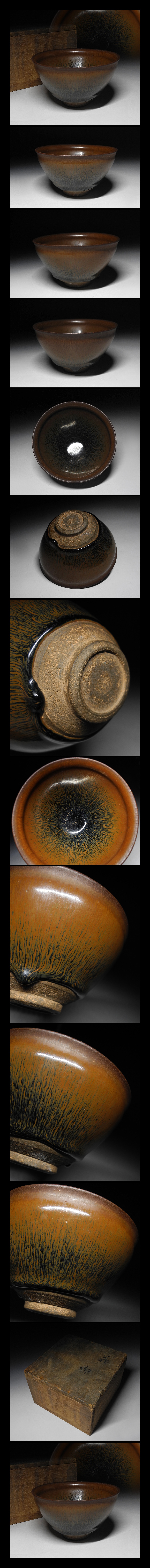 緑屋i■ 中国古玩 天目釉 禾目天目 天目茶碗 兎毫盞 木箱 建窯 唐物 時代物 i9/1029-8/29-6#60 收藏
