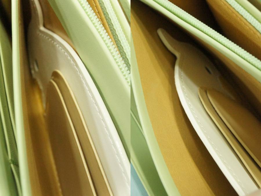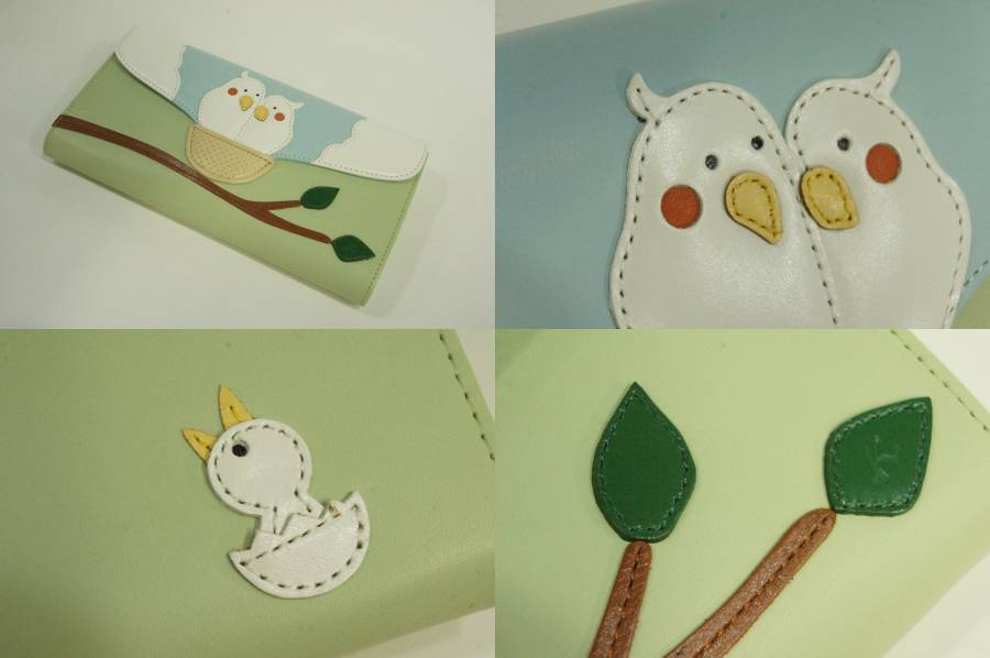 インコ型のカードケースや羽の引き手など細部までこだわりました。