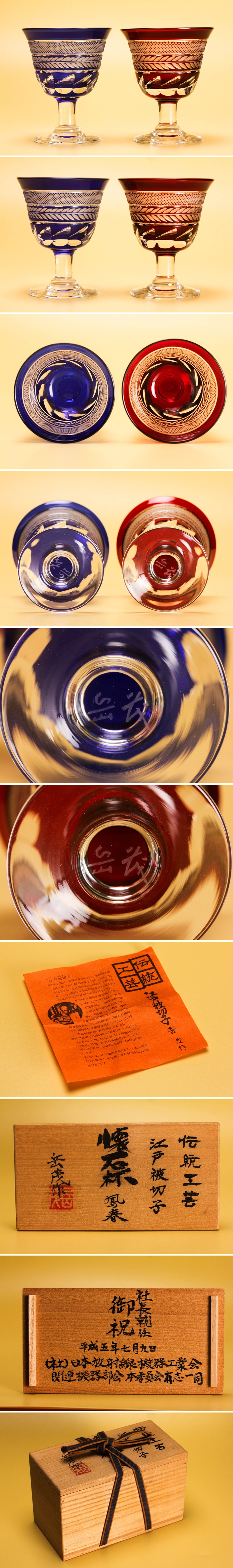 矢部保(岳茂) 江戸被切子 銘『鳳春』懐石杯 共箱 栞 本物保証 收藏