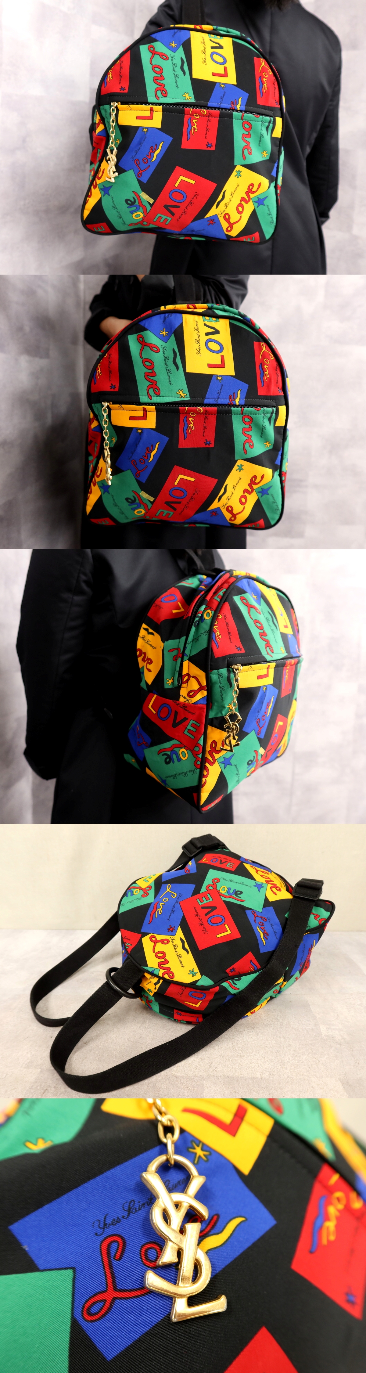●超美品●YSL Yves Saint-Laurent イヴ・サンローラン●LOVE●ナイロンキャンバス●リュックサック●マルチカラー●G金具●A4●Js62096 收藏