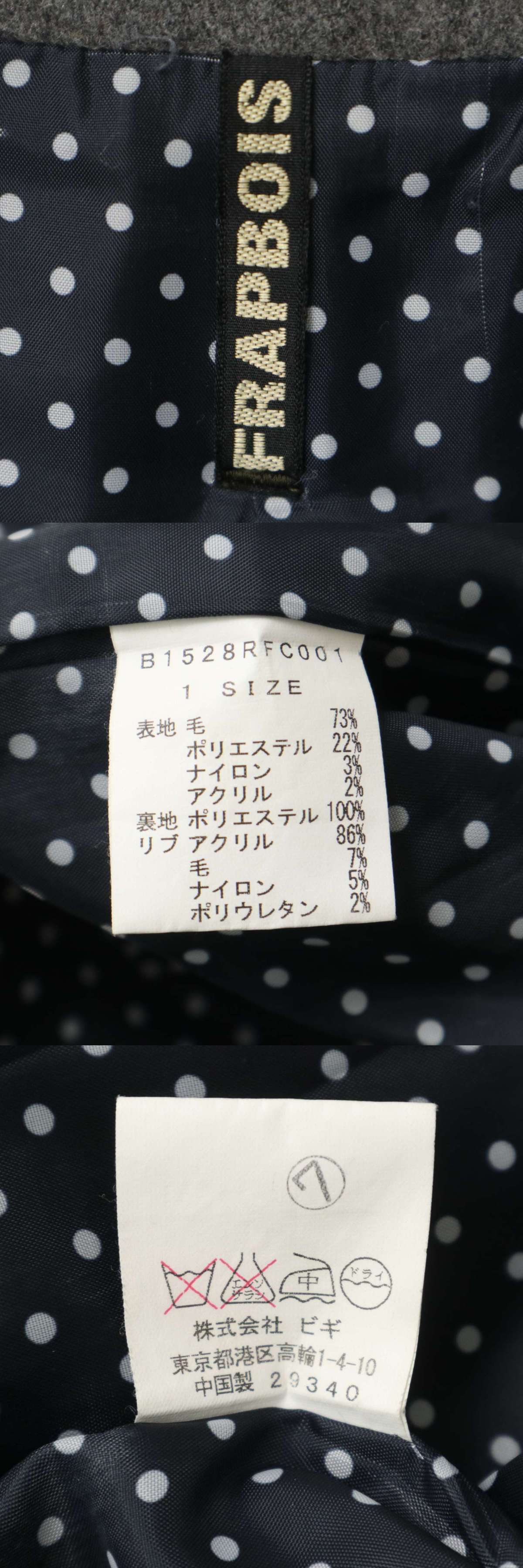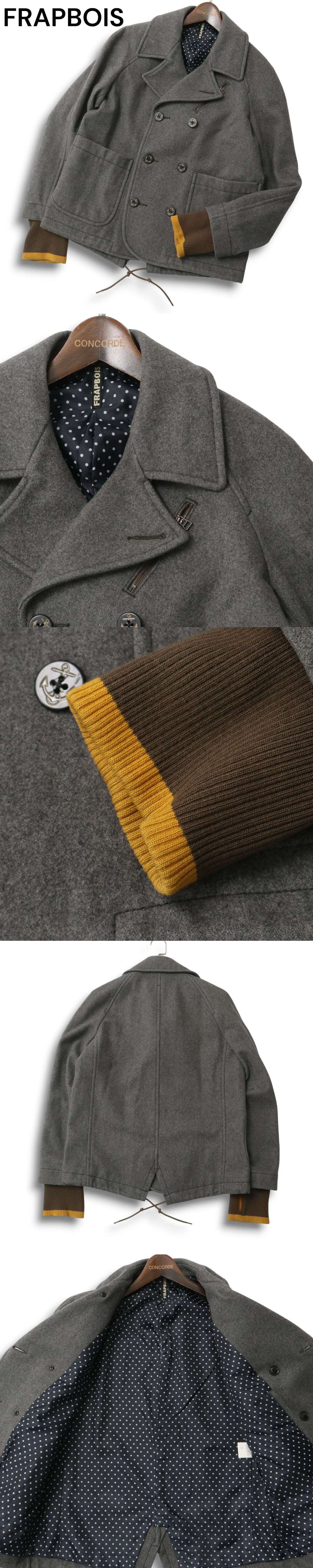 FRAPBOIS フラボア 秋冬 ウール★ 裏地ドット 袖口リブ 切替 Pコート Sz.1 メンズ 灰 グレー 收藏