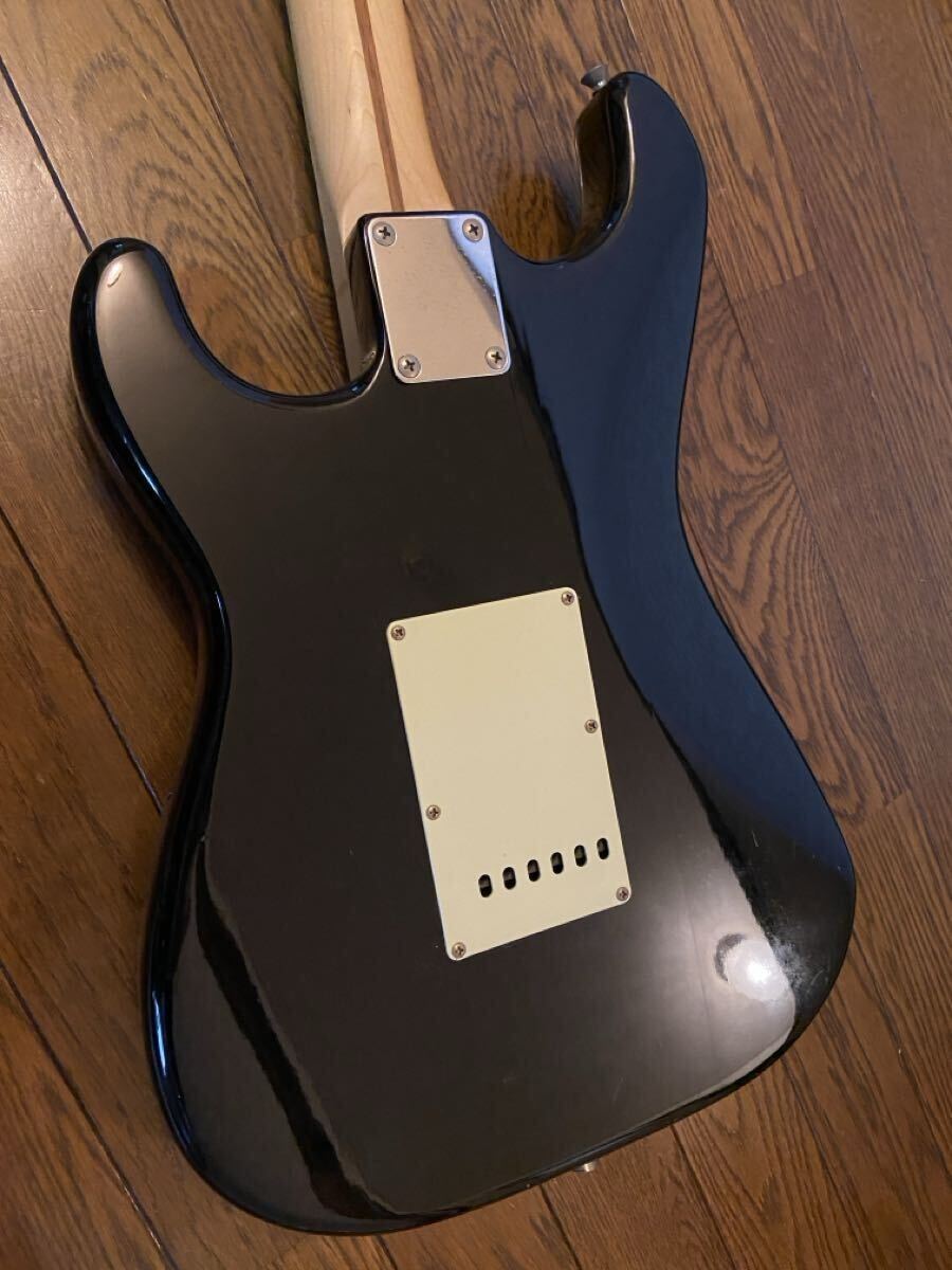 ■ 黒ボディ×メイプルネック×白3層ピックガードの希少構成