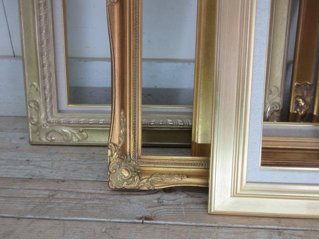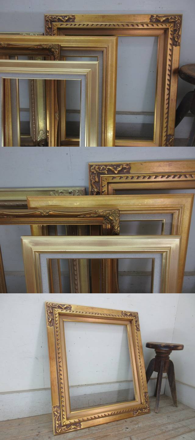 古い木製フレーム5個セットQ519 アンティーク家具ゴールドフレーム額縁木製額縁店舗什器カフェ什器スタジオ無垢材古家具 收藏