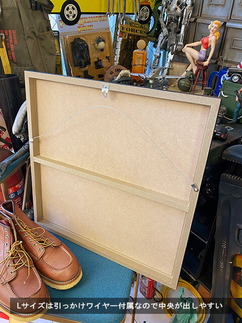 Lサイズは重さ1.2kgありますが、引っかけワイヤー付属ですので意外と簡単に飾り付けできますし、水平に調整するのも容易です。