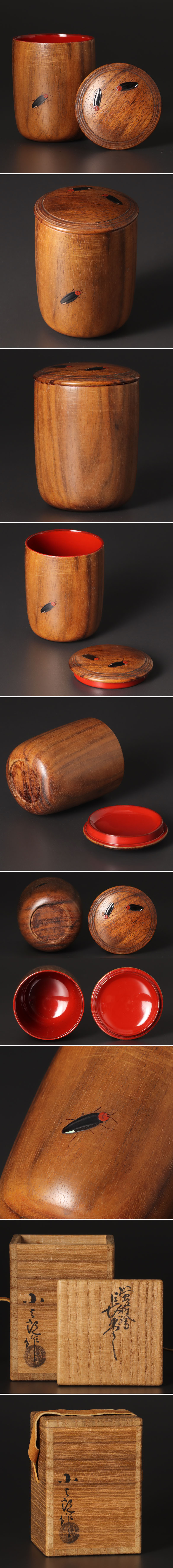 蛍に小さく青貝があしらわれ、控え目な輝きがとても上品です。内側のつややかで鮮やかな朱とのコントラストも美しく目を引きます。 ★商品は小三郎の作品である事を保証致します。 |