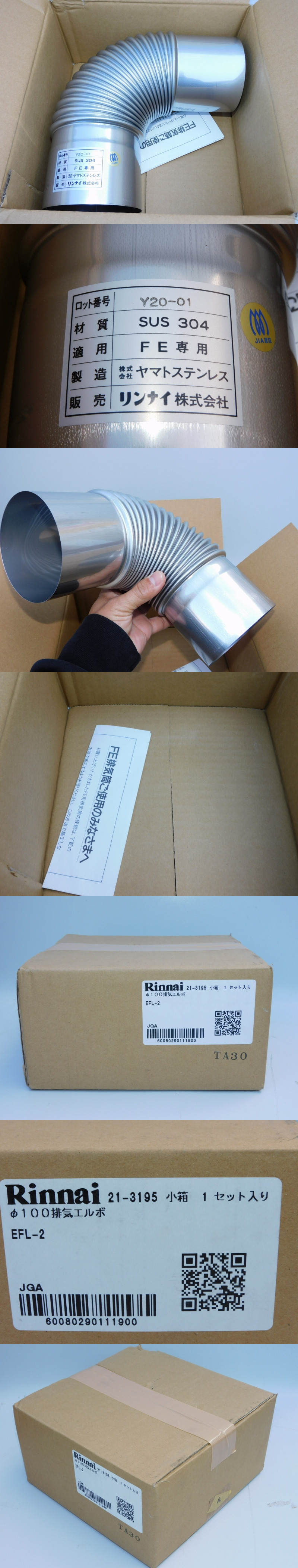【f1380/新品未使用/送料無料】リンナイ 100 排気エルボ45 EFL-2 21-3195 FE用 SUS304 保管品 美品 收藏