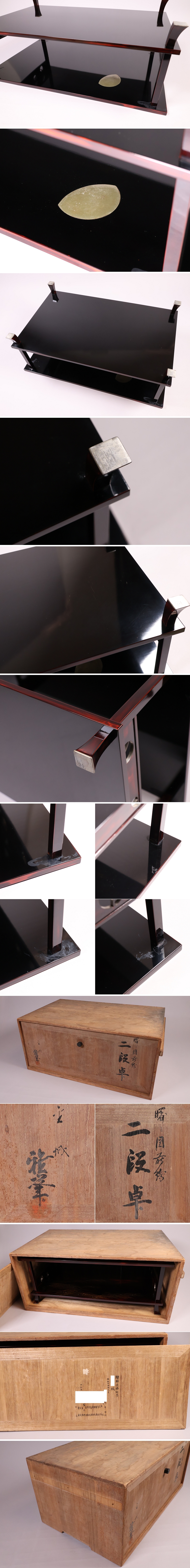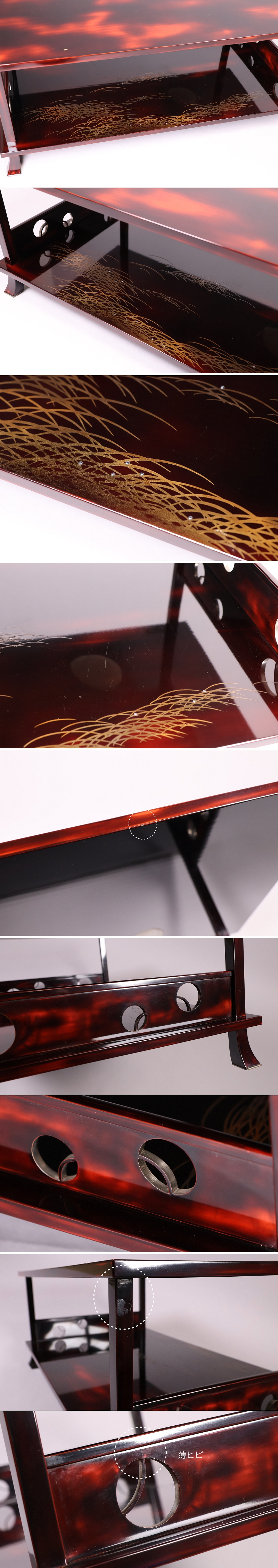 ◇金城 前端雅峯 二段卓 冠卓 曙塗 つぼつぼ透かし細工 月と草蒔絵 銀露 漆芸 木製 伝統工芸品 山中塗 塗師 花台 香炉台【MB53】◇