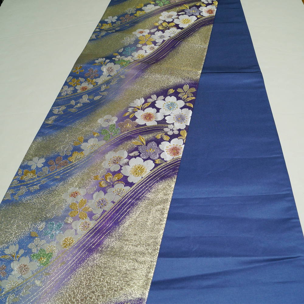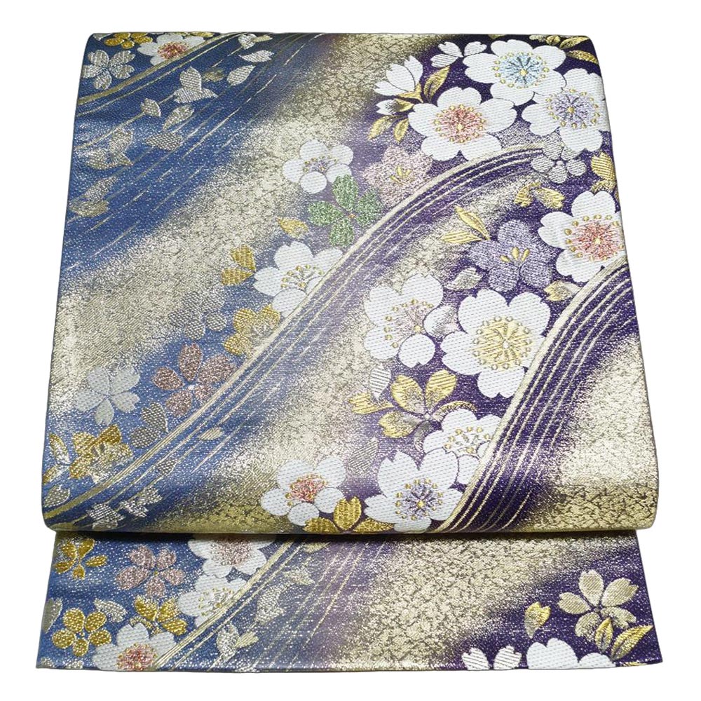 | 商品 説明 | 金・紺桔梗・紅桔梗色系ぼかしの地に流水に桜模様が織られた袋帯です。きものやまと扱い、ガード加工済です。 振袖向きの帯となります。 |