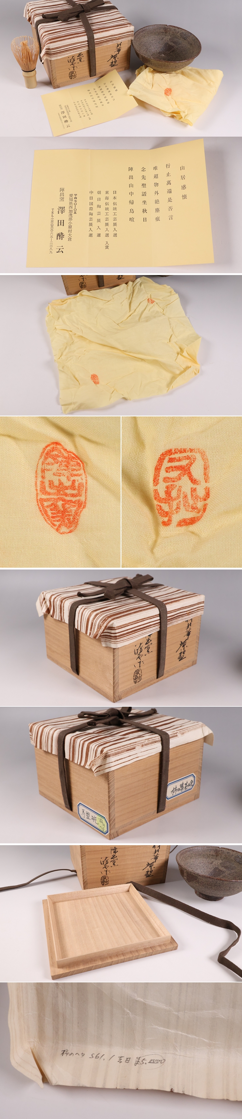 茶道具 陣出窯 澤田酔云 柿の蔕 茶碗 共箱 共布 瀬戸焼 陶芸【MB72】 收藏
