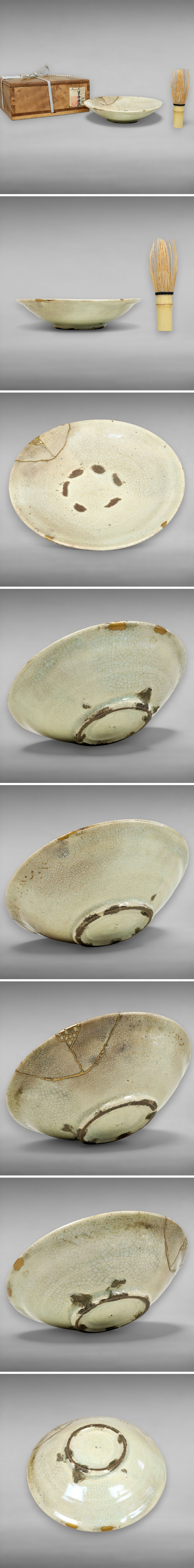 李朝期 堅手 平茶碗 金直し 箱 高麗 朝鮮美術 茶道具 煎茶道具 古陶磁 古美術 骨董品 9554vfczN 收藏