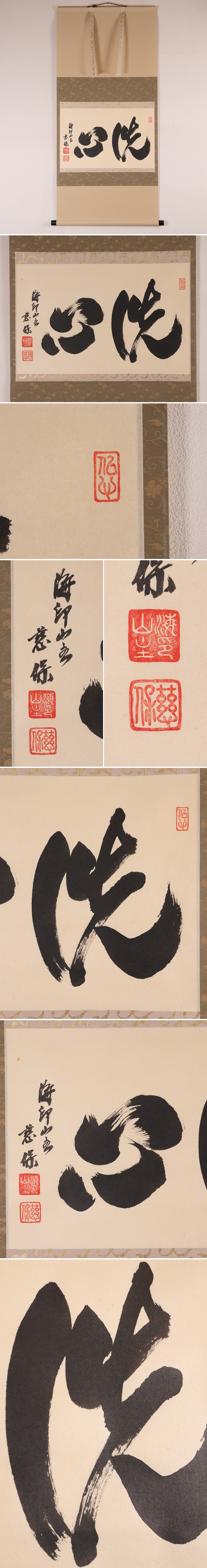 【真作】金剛慈保 書「洗心」紙本 掛軸 臨済宗妙心寺派 正願寺 横物 茶掛 茶道具 MB145 收藏