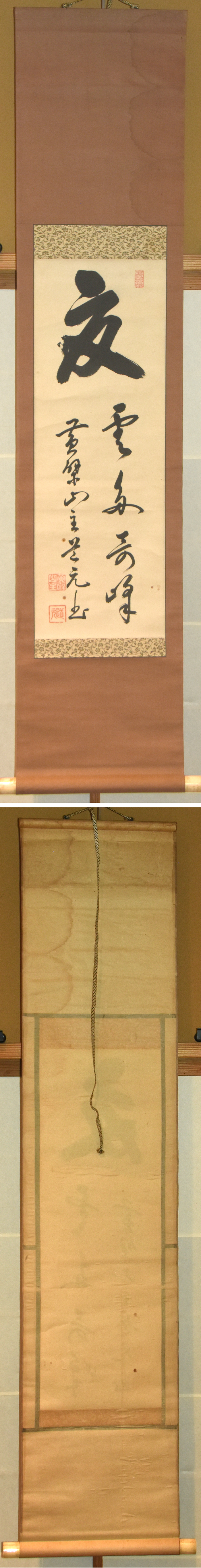 軸 横幅:28㎝ 長さ:130㎝ 本紙 横幅:22㎝ 長さ:64㎝ |