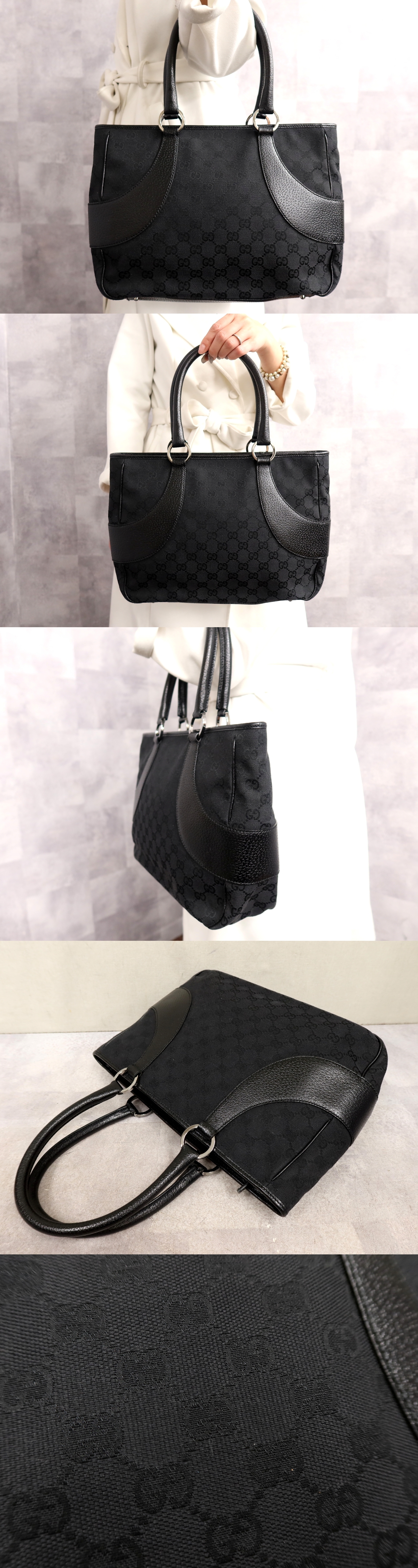 ●超美品●GUCCI グッチ●GGキャンバス カーフ レザー 本革●トート バッグ●黒●シルバー金具●イタリア製●B5 書類 収納 かばん●Js64866 收藏