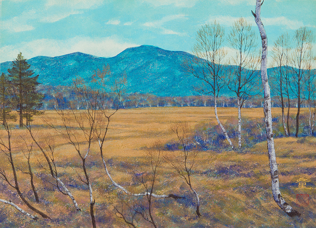 【1on1】真作 水戸童 『尾瀬』 日本画 彩色 4号 共シール 額装 ■ 日展会員 師:伊東深水・大山忠作 收藏