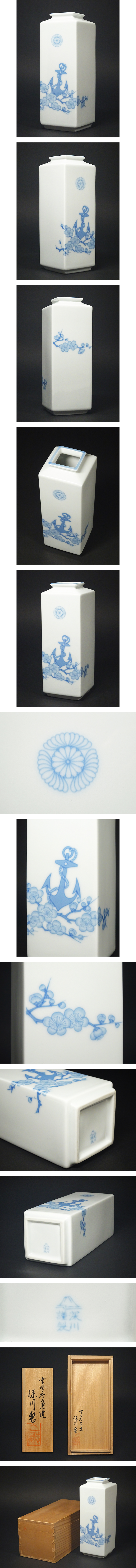 慶應◆皇室所縁の美術品 高松宮家御下賜品 白磁染付梅花に錨文四方花瓶 「深川製磁」謹製 共箱 收藏