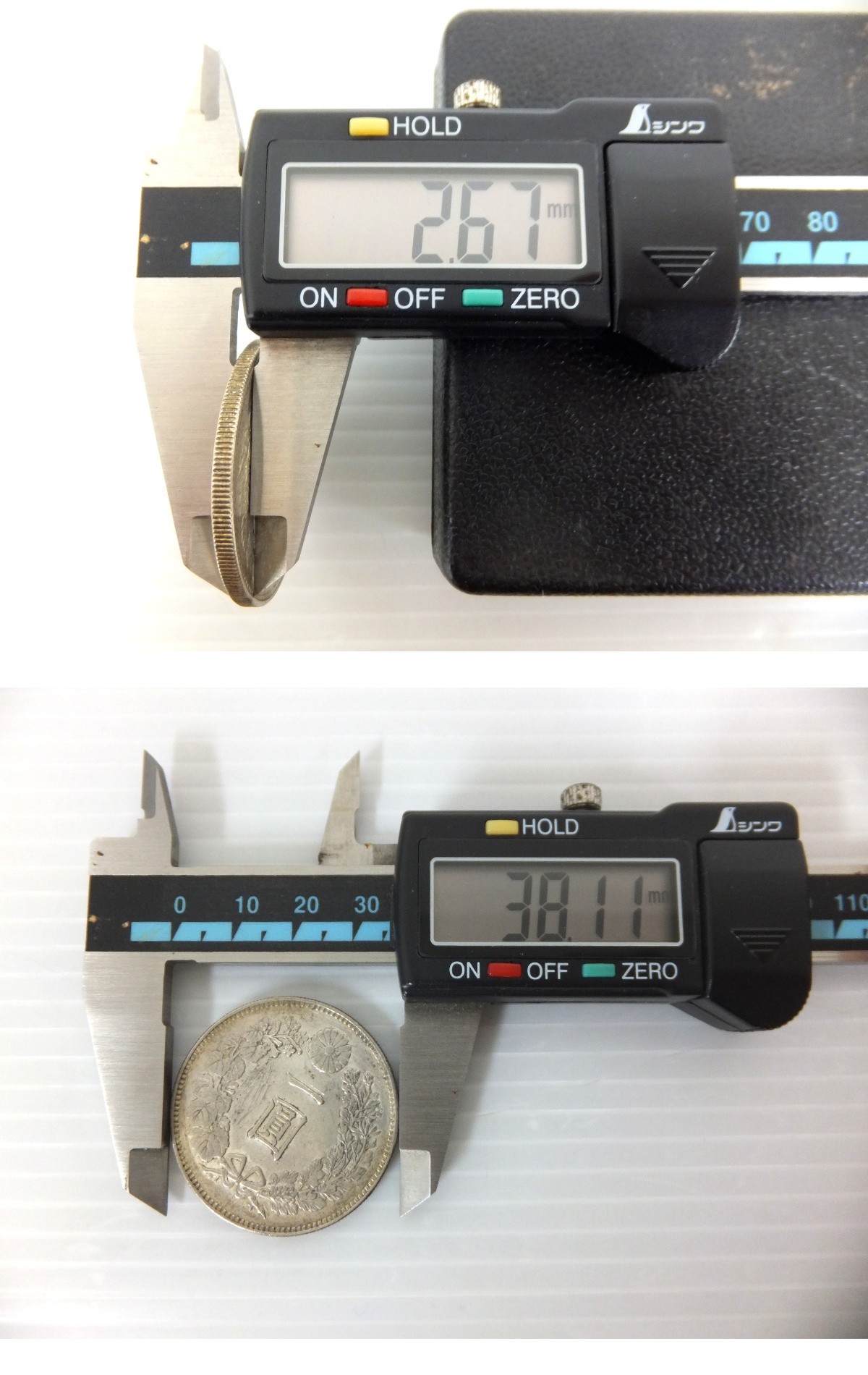 新1円銀貨 小型 明治22年 直径約38.1mm 厚み約2.67mm 量目約27.0g 近代貨幣 一円銀貨 一圓銀貨 明治二十二年 ご覧頂きまして誠にありがとう御座います。 商品は中古品です。傷や汚れ等は見られます。 画像でご判断の上、気にされる方や神経質な方の入札はお控え下さい。 付属品は画像にあるものが全てです。 直径:約38.1mm 厚み:約2.67mm 量目:約27.0g 素人採寸・計量の為、僅かな誤差はご容赦ください。 専門知識がない為、詳細は不明で御座います。 詳細は画像にてご確認くださいませ。 保証や返品は出来かねます。予め御了承くださいませ。 こちらは[レターパック600]でお届けいたしますので、日時指定や、時間指定は出来ません。 申し訳御座いませんが、直接のお渡し、発送方法の指定は受付出来かねます。 商品は簡易梱包で発送致します。予めご了承くださいませ。 NC/NRで宜しくお願い致します。 ※ご理解いただける方のみご入札下さい。 ※個人保管品の為、神経質な方のご入札はお控え下さいませ。 ※入札の取り消しはできません。サイズ・送料などご確認のうえ、慎重なご入札をお願いいたします。 ※新品、未開封品の万が一の初期不良は、メーカー・製造元にご相談ください。当方での保証などは致しかねます。 万が一規約に反する商品だった場合は、送料を含む商品代金の全額を返金対応させて頂きます。 powered by auction-labo.com