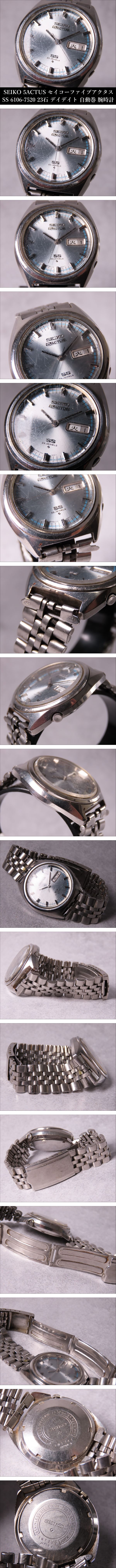 20260212SI260124PX/2 ※ご入札いただいた時点で下記記載事項全てにご了承いただいたものとさせていただきます。※商品タイトルは当方判断に基づき記載しております。また単にキーワードとして記載している場合もございますので予めご了承ください。 【ONE'S】SEIKO 5ACTUS セイコー ファイブアクタス SS 6106-7520 23石 デイデイト 自動巻 メンズ腕時計 動作品 なかなかお目にかかることのないお品物をこの一期一会のご機会にぜひ。 【サイズ】 横幅:約38mm ベルト幅:約19mm ※当方が測ったものですので、若干の誤差がある場合がございます。 【商品状態】 動作品 気になる点と致しましては、一部リューズが外れております。 掲載画像をご覧下さい。 動作品といたしましては、3針動作を確認いたしております。 当方では日差等の精密な動作等およびムーブメント細部の状態等は確認いたしておりません。 よって当方では日差等の精密な動作およびムーブメント内部の状態等は保証・補償致しかねます。 あくまでも年代物かつ一度人の手に渡っているお品物の為、傷、汚れ、変色、経年の劣化等があるものとお考えいただき、神経質な方のご入札はお控え下さい。 PC上の画像と商品の色目が若干異なる場合がございます。 新品・中古品問わず、一度人の手に渡っているお品物ですので、ご理解のある方のみご入札をお願い致します。 説明文に記載のある物や写真に写っているもの以外は基本的に付属しておりません。 落札後のトラブルを避ける為にも、説明および画像をよくご覧になってから、ご入札のほどよろしくお願い致します。 商品状態の記載に関してはあくまでも当方判断基準となっております。 状態等の詳細は写真をご確認いただき購入者各自のご判断にてご入札ください。 | |||