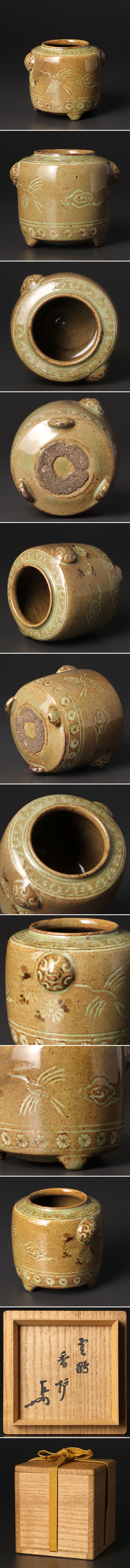 時代あり雲鶴の趣のある文様と巧みな造形が味わい深い香炉です。 ★商品は即中斎書付の作品である事を保証致します。 |