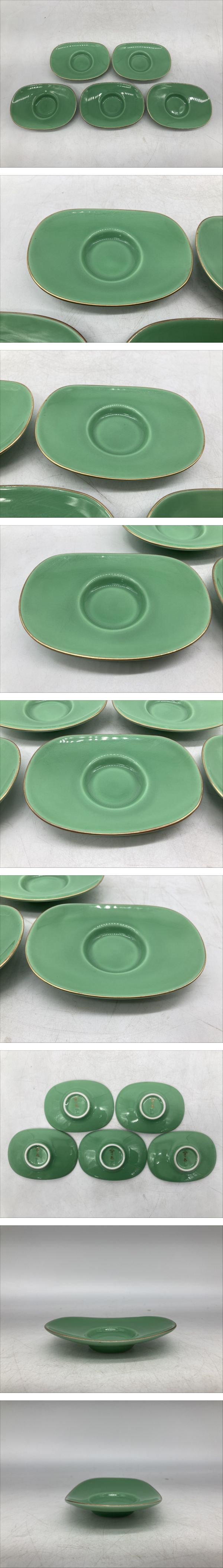 | 商品説明 | 京都6★ 深川製 茶托 舟型 グリーン 5客 陶器 深川製 茶托 舟型 5客セットです。 多少の汚れがございますが、大きなダメージはございません。 ■サイズ 高さ:約2㎝ 横幅:約11㎝×8㎝
