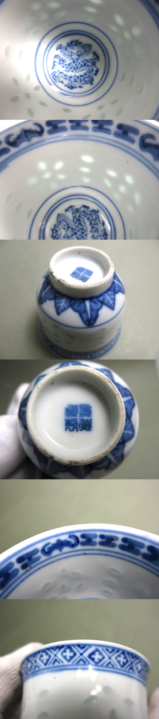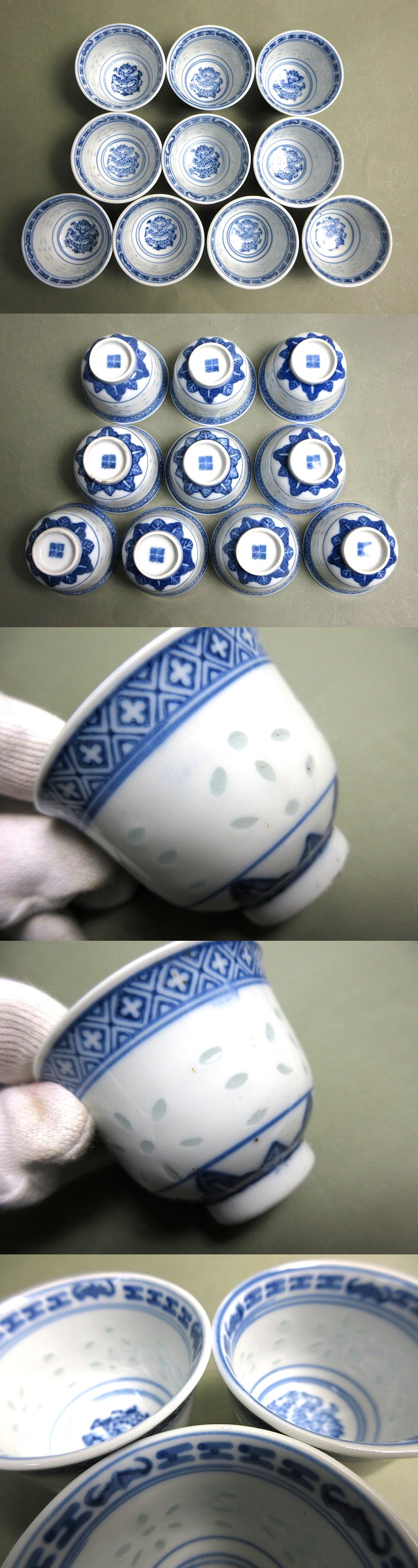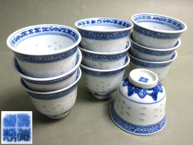 景徳鎮制 蛍手 染付 煎茶碗 10客【説明欄に詳細写真有り】の出品です。