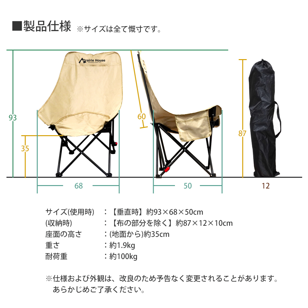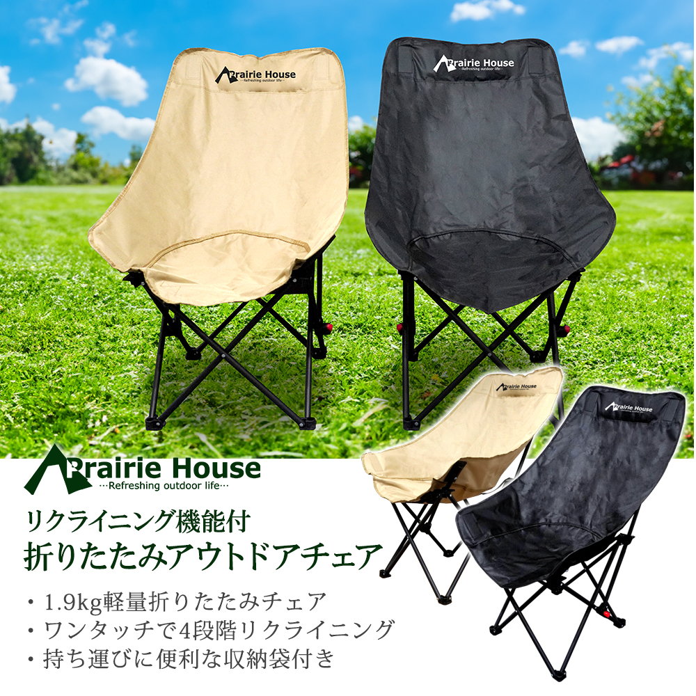 Prairie House キャンプチェア リクライニングチェア アウトドア フォールディングチェア 折りたたみチェア 椅子 イス ベージュ XO852Y 收藏
