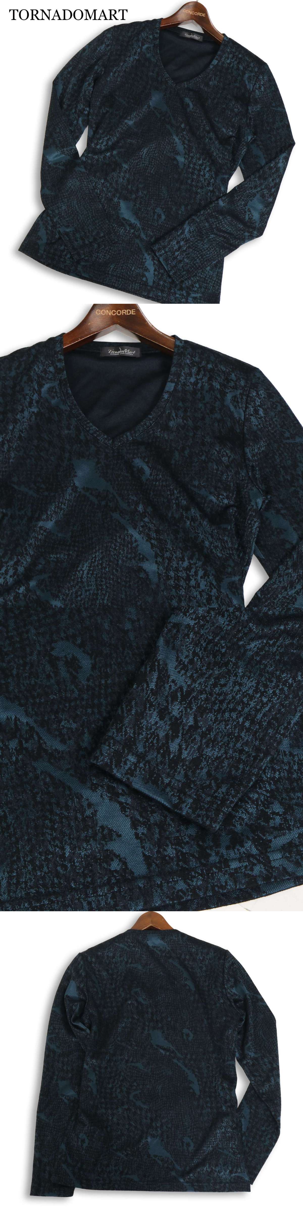 TORNADOMART トルネードマート 通年 ブライト クラッシュ千鳥 総柄★ 長袖 Vネック カットソー Sz.M メンズ 日本製 收藏