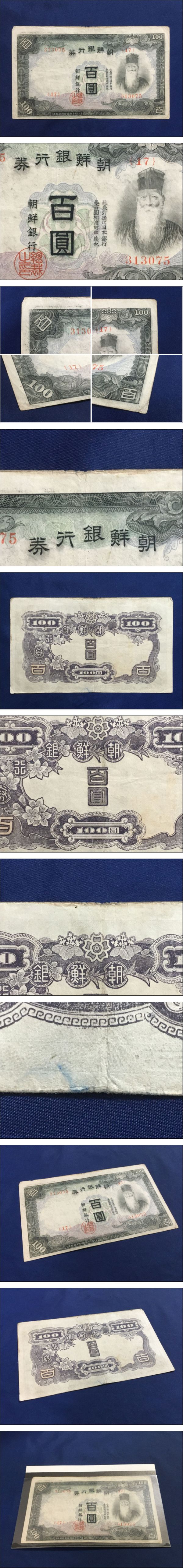 ◆朝鮮銀行券 朝鮮紙幣 百圓 (17) 313075 古紙幣 古銭 百円 17-29(朝紙29)朝甲100円券 1枚 收藏