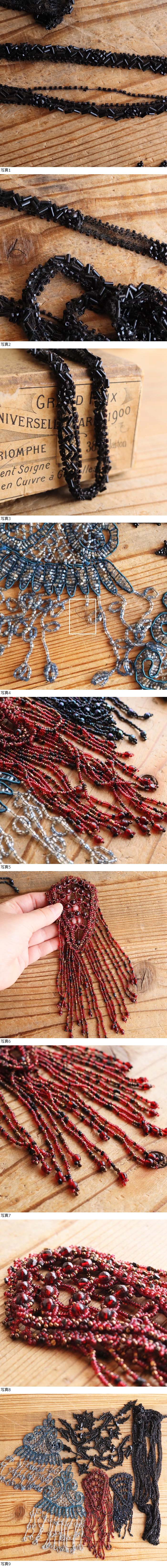【202】7点セット!フランス アンティーク ヴィンテージ ガラス ビーズ モチーフ フリンジ 刺繍 アールデコ ハンドメイド 素材 装飾 パーツ 收藏