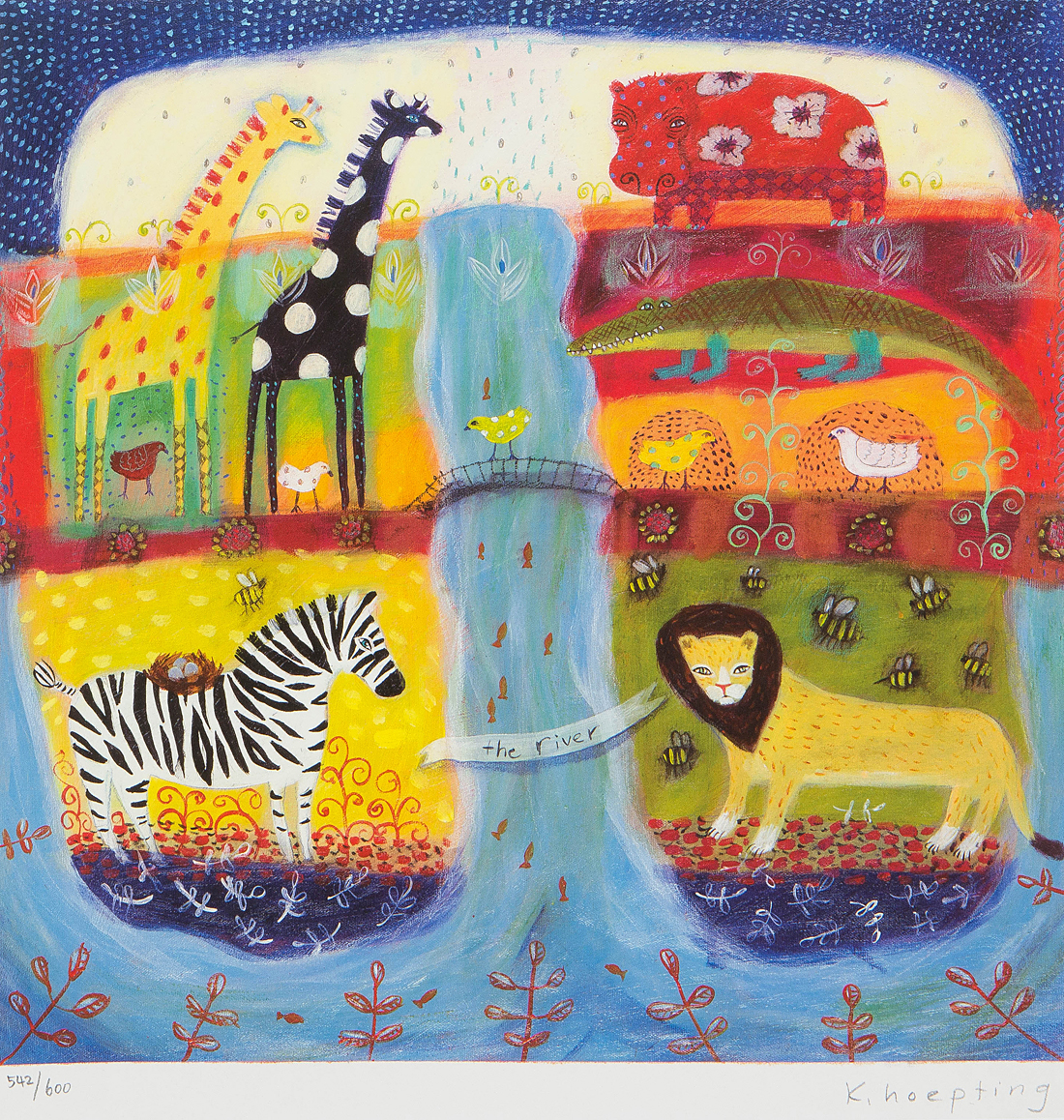 【1on1】真作 カレン・ホイプティング 『The River』 ダイヤモンドスクリーニング ed600 直筆サイン 作品保証書■カナダ出身世界的人気画家 收藏