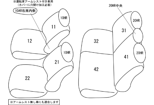| 適合形状 | シートヒーター対応 グレードによって1列目運転席アームレストの有無があります ※運転席アームレスト同梱、運転席背もたれ要穴開け加工 | ||