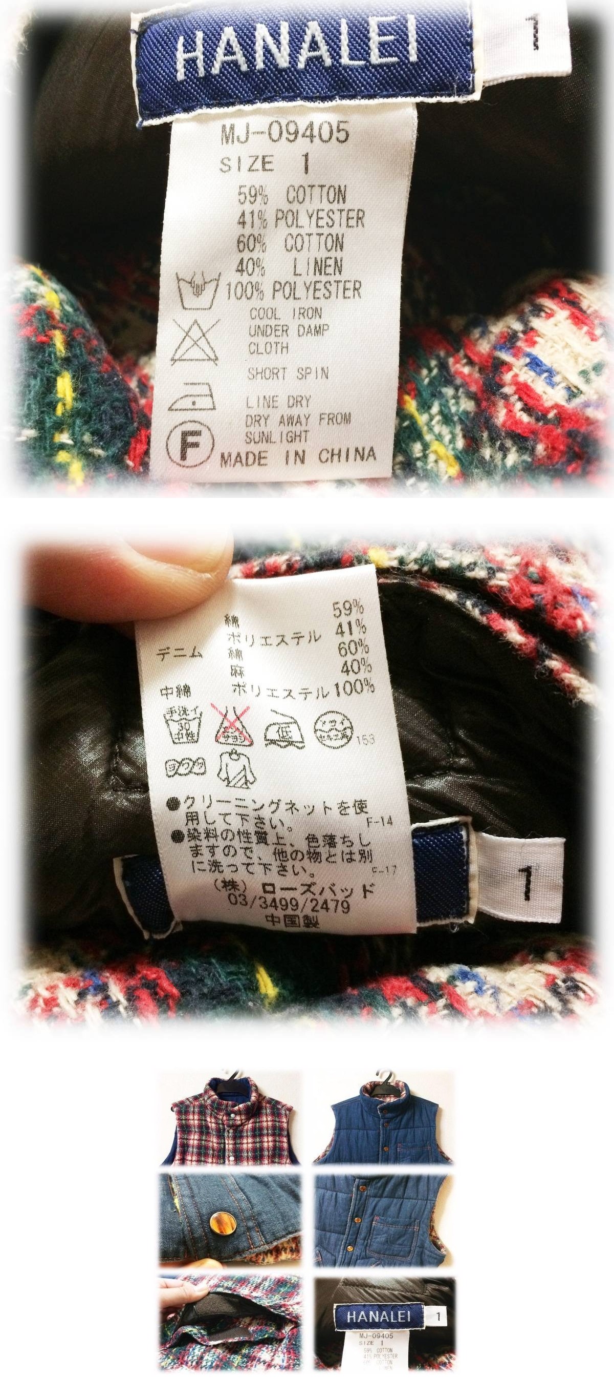 HANALEI ハナレイ リバーシブル ダウンベスト ローズバッド 軽くてあたたかい アメカジ カジュアル おしゃれ デニム チェック柄 M 美品 激安 送料無料 最安値 | |
