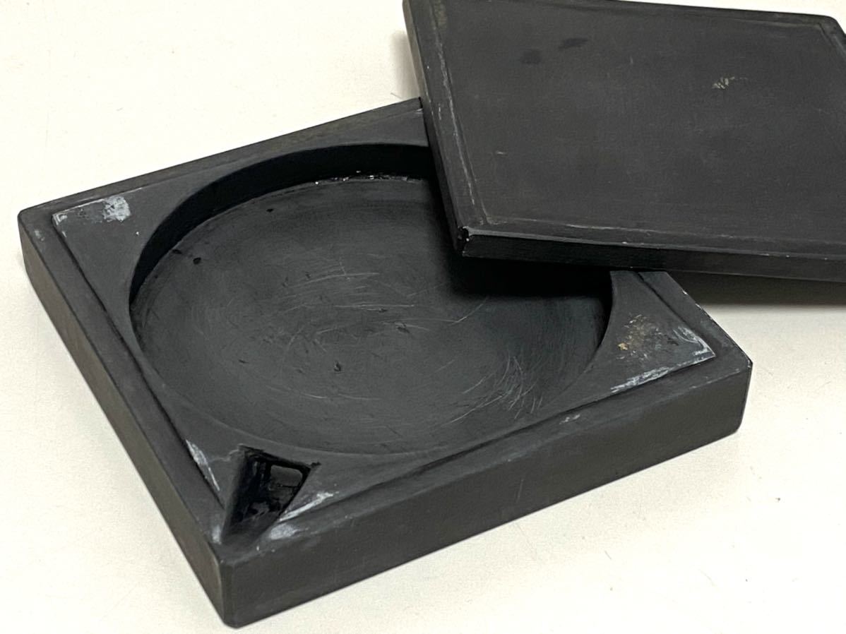 ☆書道家所有品 硯 蓋付 片口 内丸 約12.2㎝×厚さ約2.7㎝ 約680g サイズは蓋込み 【中古/USED】 古硯 書道 書道具 收藏