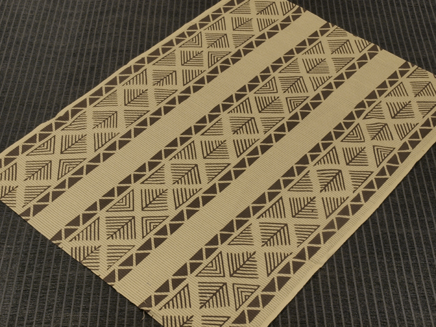 沈んだ淡い枯(かれ)色の地に、松菱の配された鱗縞(うろこしま)の文様が染められている、綿絽(五本絽)のはぎれです。 乾いたお色目に幾何学的な意匠がモダンで格好良い雰囲気です。民族布調でもあり、現代的でもあり、不思議な趣きが感じられます。 目につくしみやよごれ、褪色などのダメージはなく、とてもきれいな状態です。生地の力もあります。洗い張り済みですので、気持ちよくお使いいただけます。※風楽の出品内で同じ柄のものを複数出点している場合もあります。 |