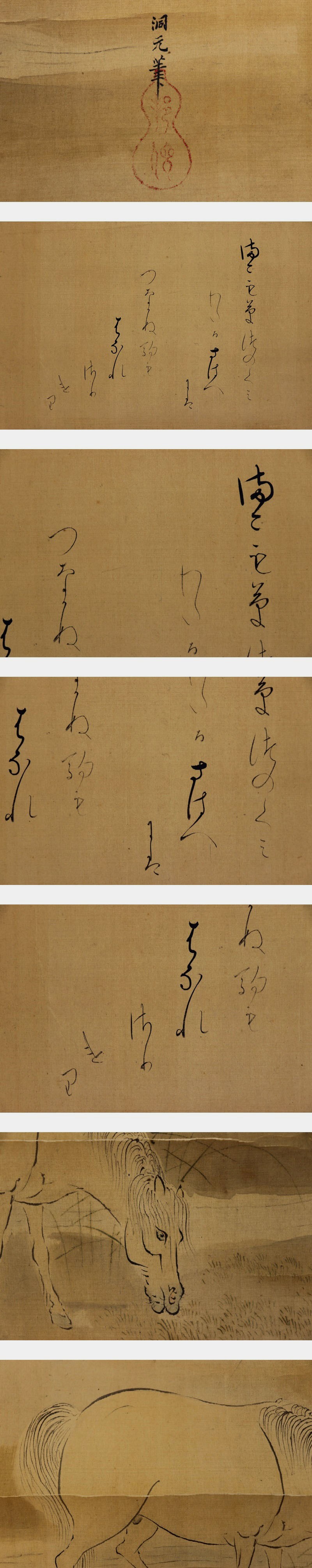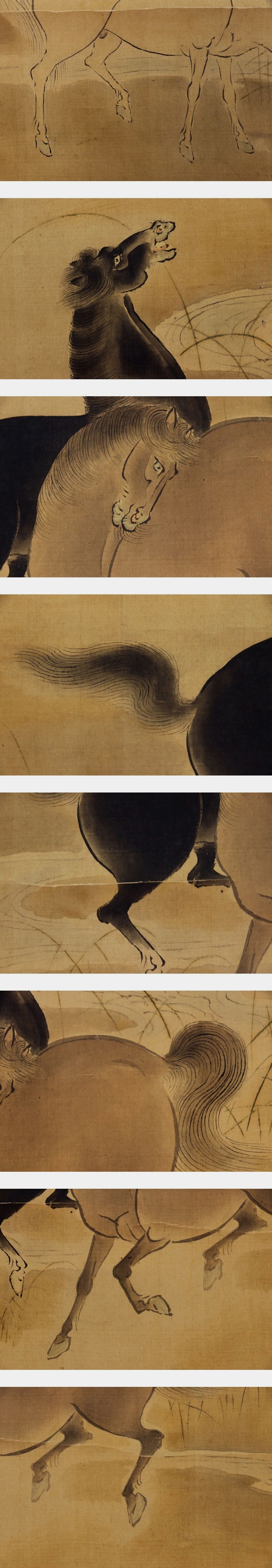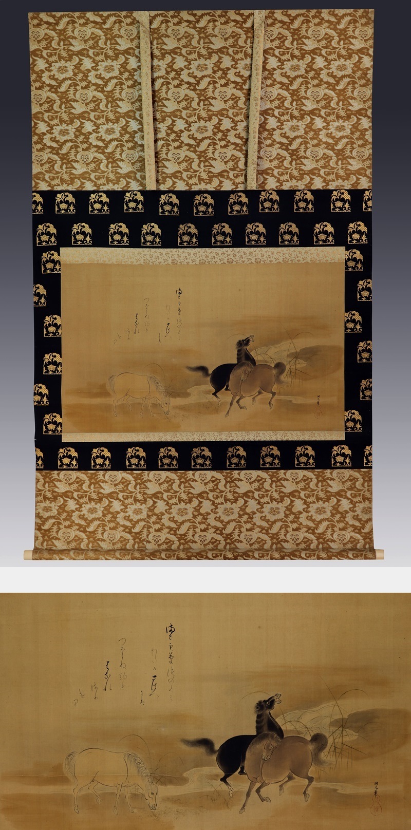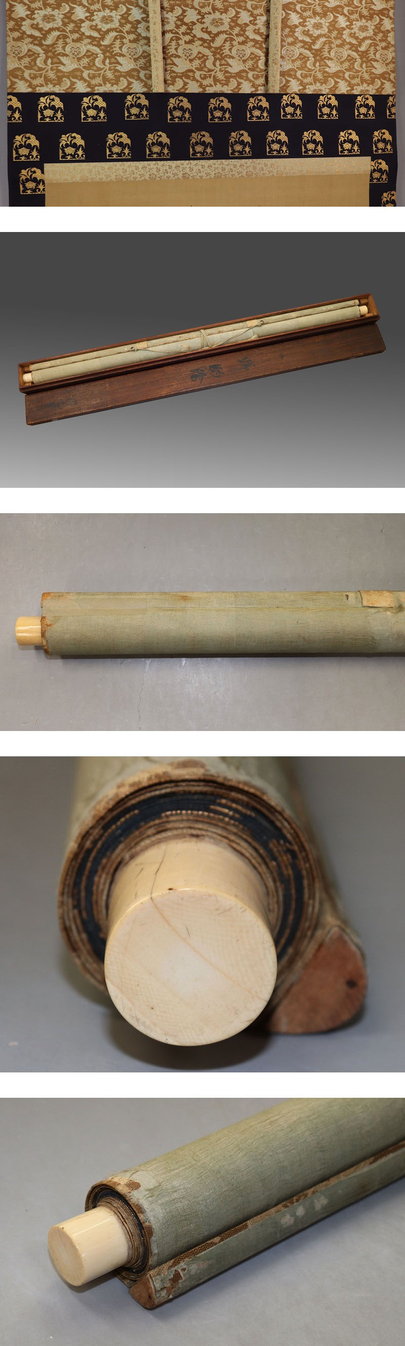 №2110117 希少【真作】狩野洞元【群馬図】◆絹本◆合箱◆掛軸 | |