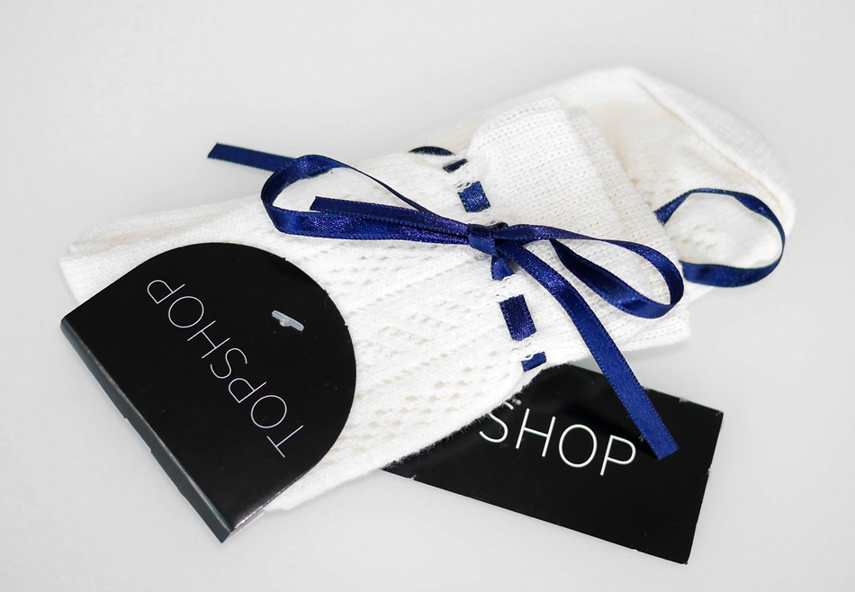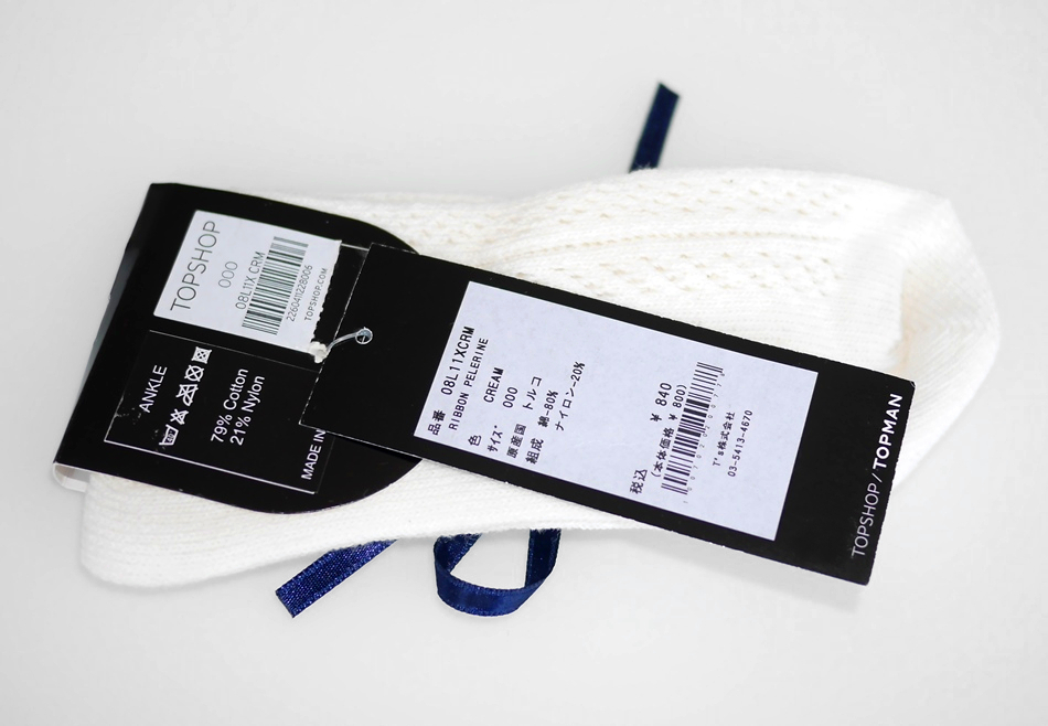 新品 TOPSHOPソックス靴下クリーム白ホワイト リボン パンプスソックス レディース フリーサイズ ニットCECILスクールソックス制服コットン 收藏