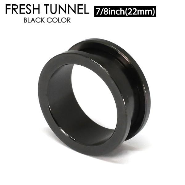 フレッシュ トンネル ブラック7/8インチ(22mm) BLACK アイレット サージカルステンレス カラーコーティング ボディピアス ロブ 22ミリ┃ 收藏